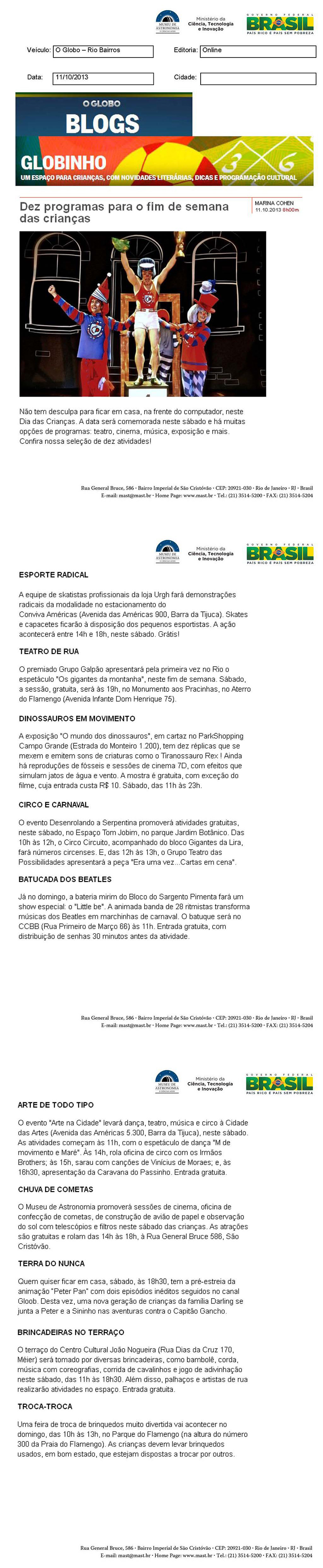 O Globo | Dez programas para o fim de semana das crianças