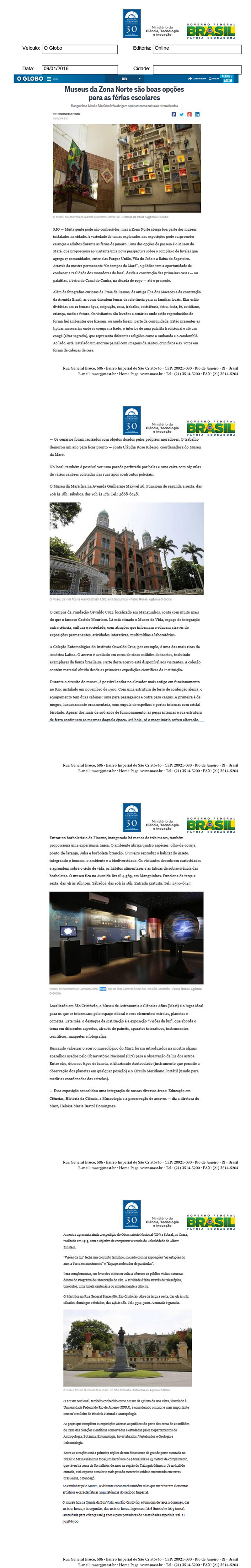O Globo | Museus da Zona Norte são boas opções para as férias escolares