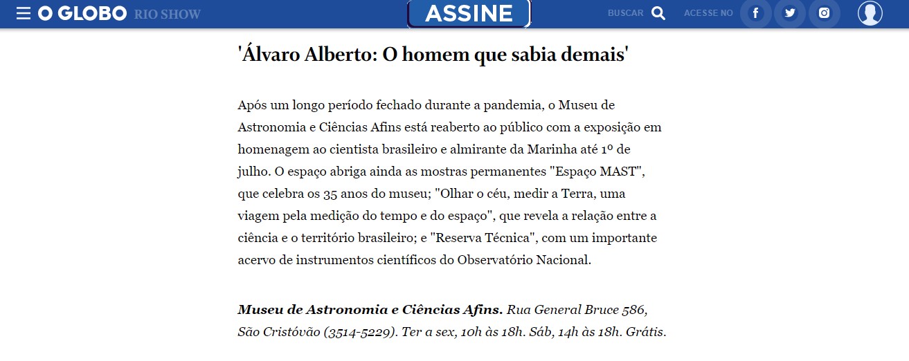 O Globo on-line / Rio Show - Exposição 'Álvaro Alberto'no roteiro das principais mostras em cartaz no Rio