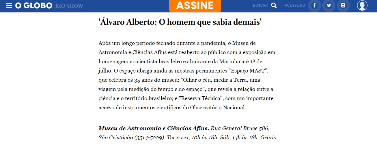 O Globo On-line / Rio Show - MAST na reportagem 'Roteiro de exposições em cartaz no Rio inclui experiência imersiva no Oi Futuro; confira destaques