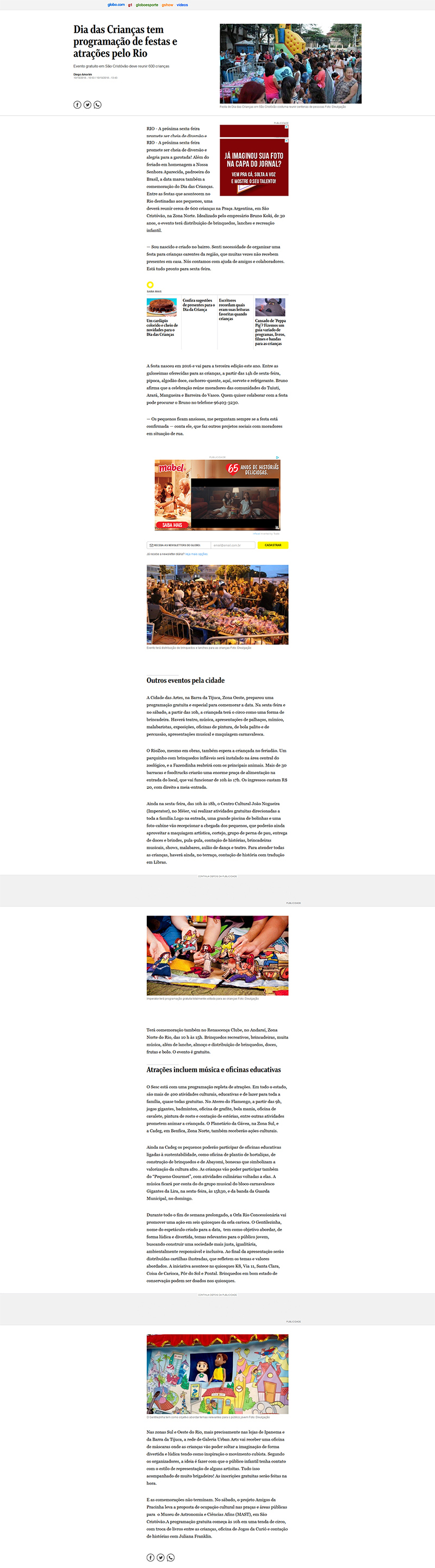 O Globo online | Dia das Crianças tem programação de festas e atrações pelo Rio
