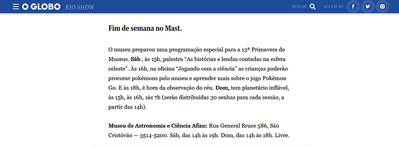 O Globo online - Rio Show | Fim de Semana de Primavera nos Museus no MAST