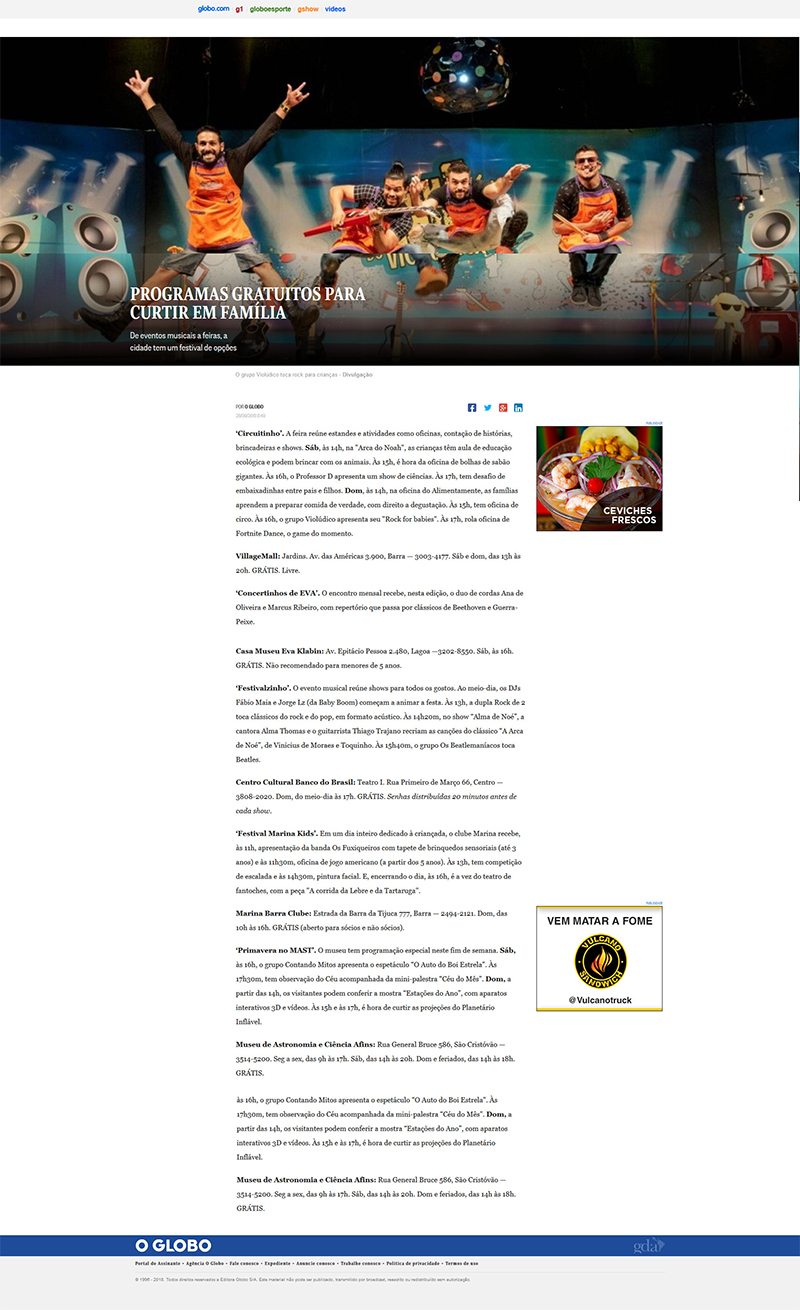 O Globo online - Rio Show | Programas gratuitos para curtir em Família