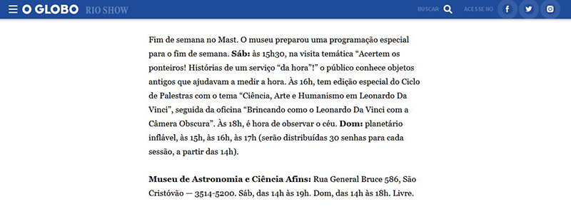 O Globo online - Show & Lazer | Fim de Semana genial no MAST