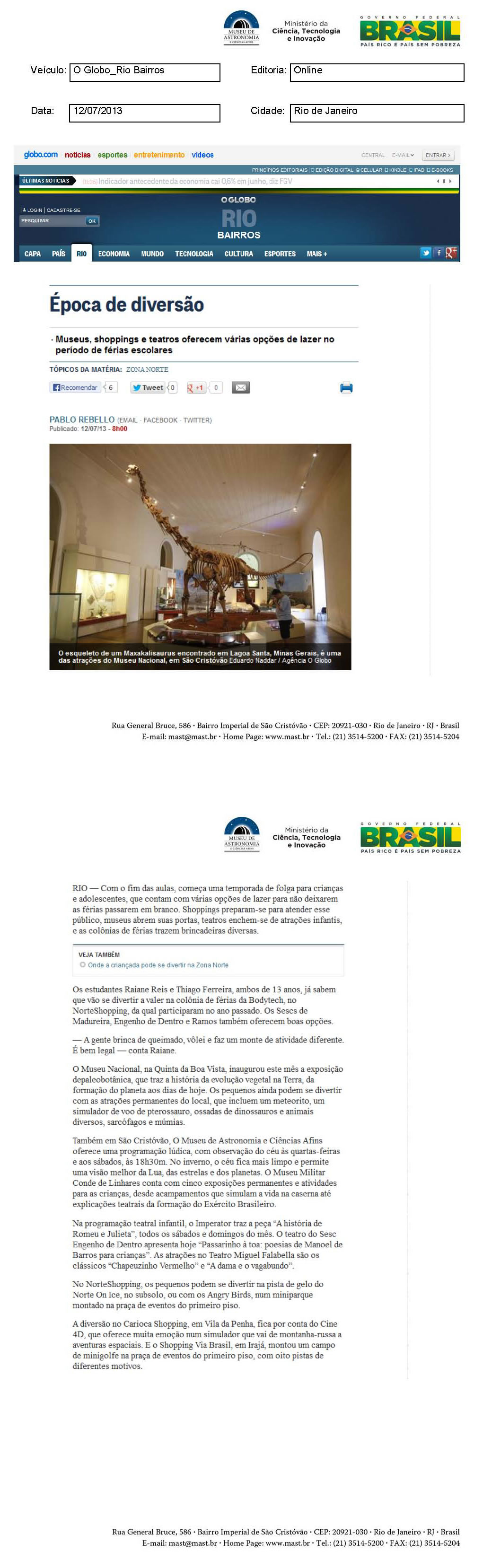 O Globo - Rio Bairros | Museus, shoppings e teatros oferecem várias opções de lazer no período de férias escolares