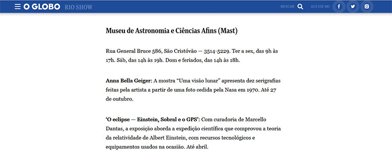 O Globo - Rio Show | Fim de Semana Astronômico no MAST