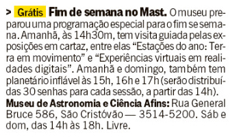 O Globo - Rio show | Fim de semana no MAST