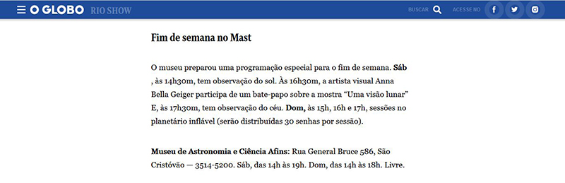 O Globo - Rio Show | Infantil - Fim de Semana no MAST