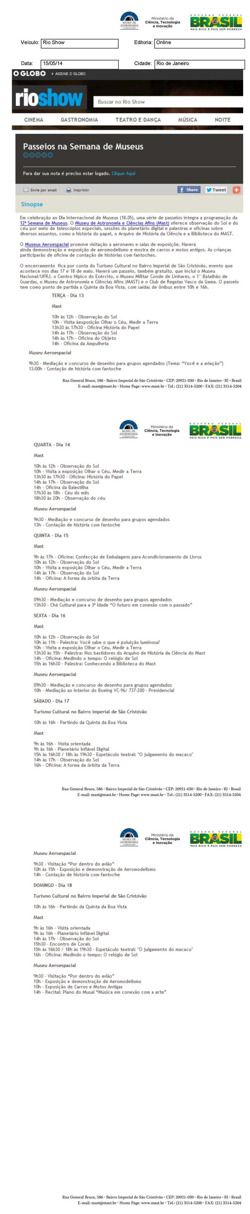 O Globo - Rio Show | Passeios na Semana de Museus