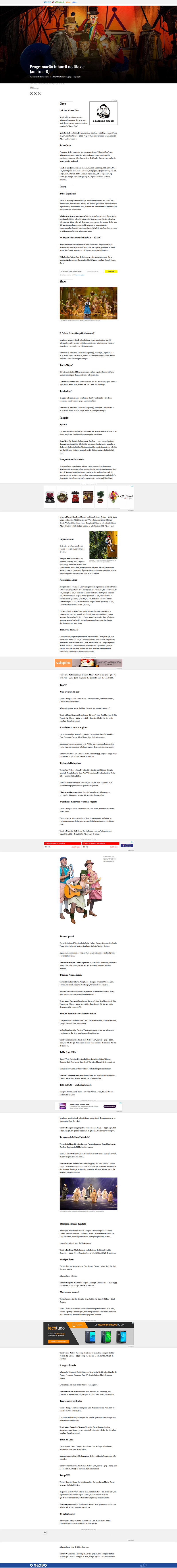 O Globo - Rio Show | Programação infantil no Rio de Janeiro - RJ (5 a 11 de outubro)