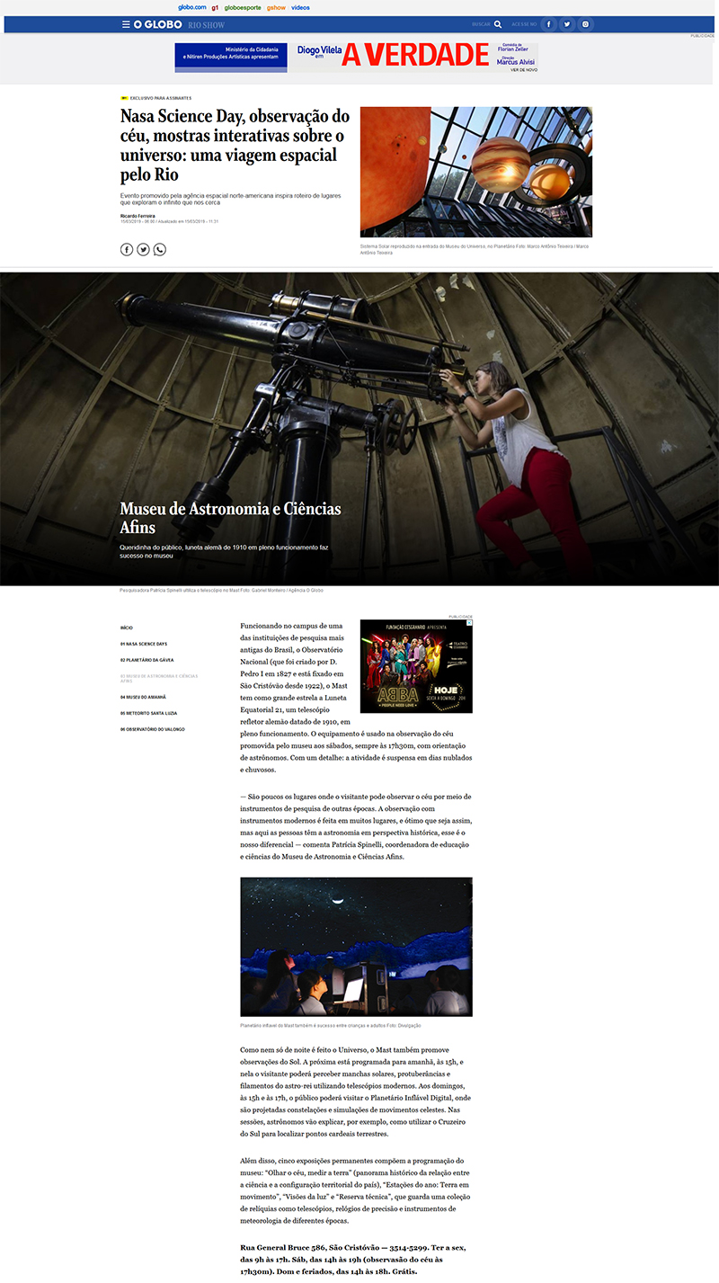 O Globo - Rio Show | Queridinha do público, luneta alemã de 1910 em pleno funcionamento faz sucesso no MAST