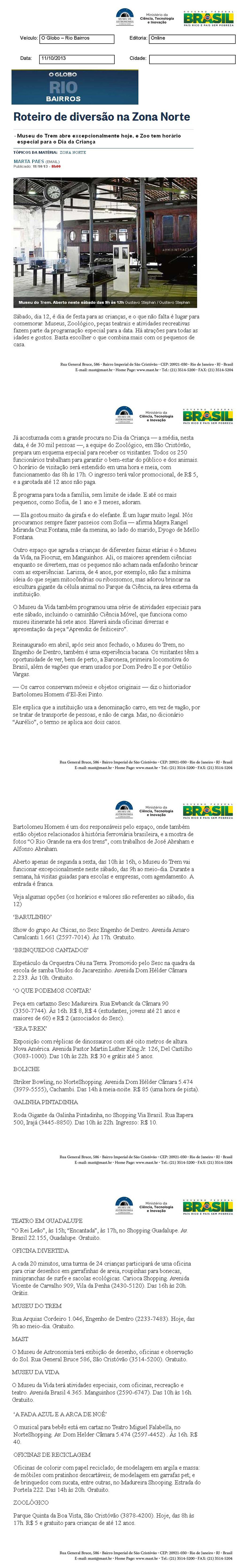 O Globo | Roteiro de diversão na Zona Norte
