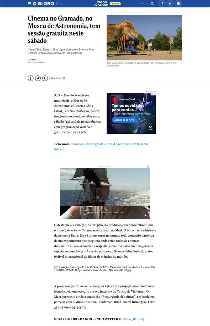 O Globo / Tijuca + Zona Norte | Sábado com Science Film Festival no gramado