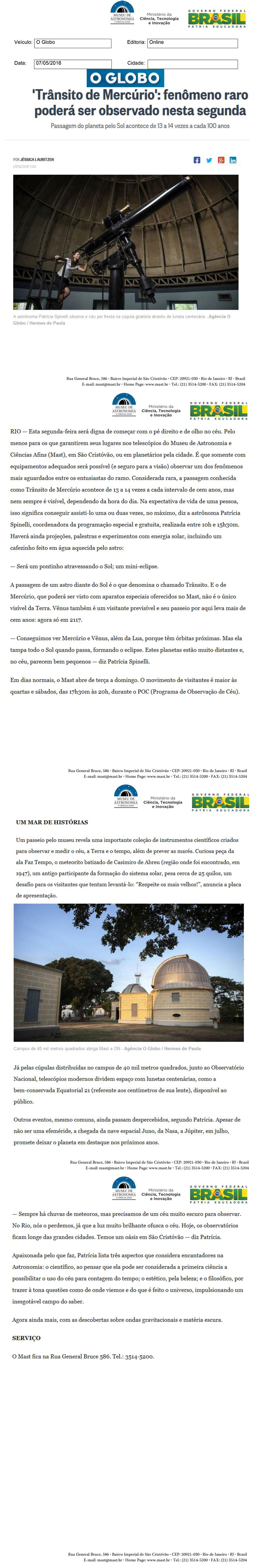 O Globo | 'Trânsito de Mercúrio': fenômeno raro poderá ser observado nesta segunda