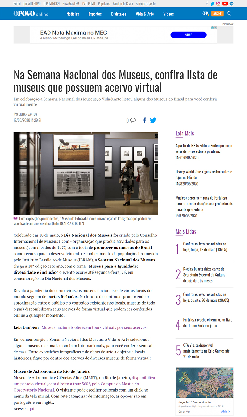 O Povo on-line (Fortaleza-CE) | MAST na Semana Nacional dos Museus
