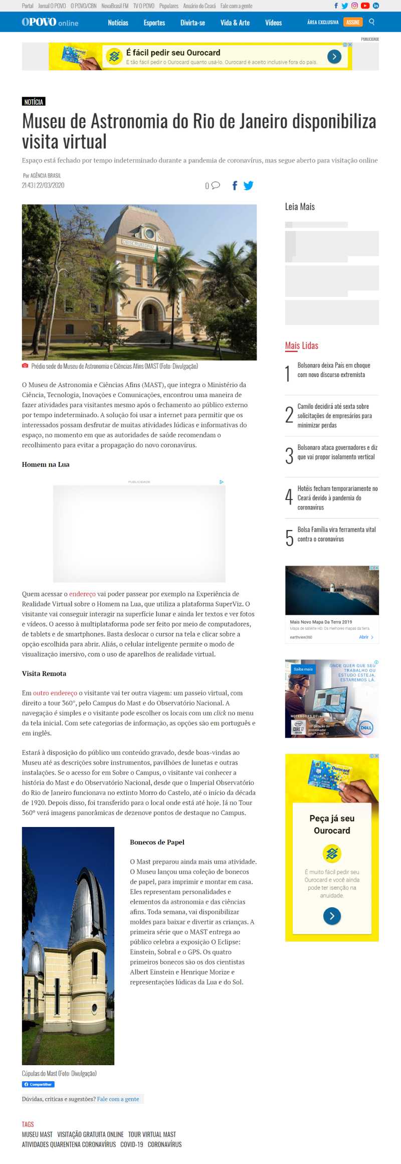 O Povo online (Fortaleza – CE) | MAST disponibiliza visita virtual