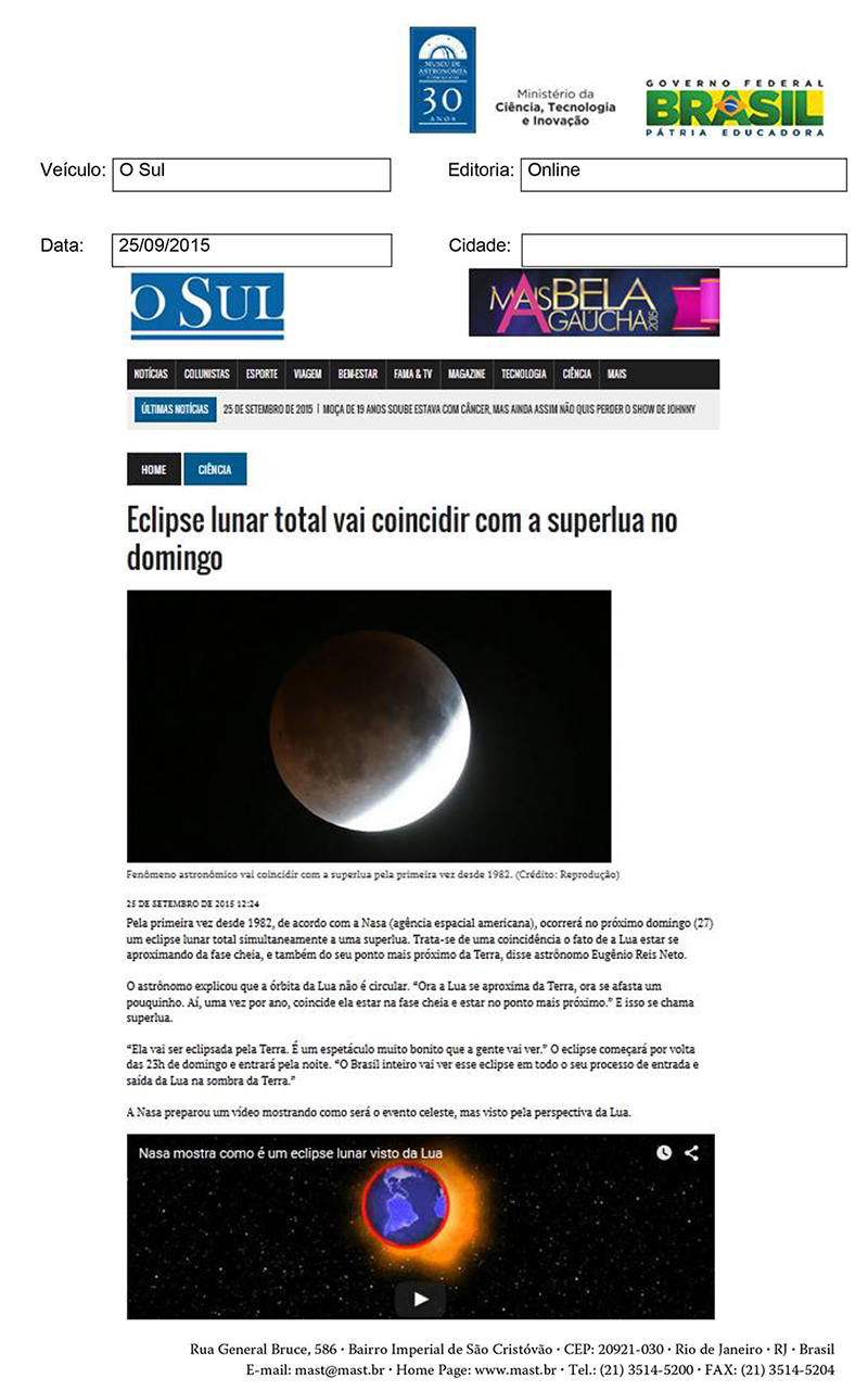 O Sul | Eclipse lunar total vai coincidir com a superlua no domingo