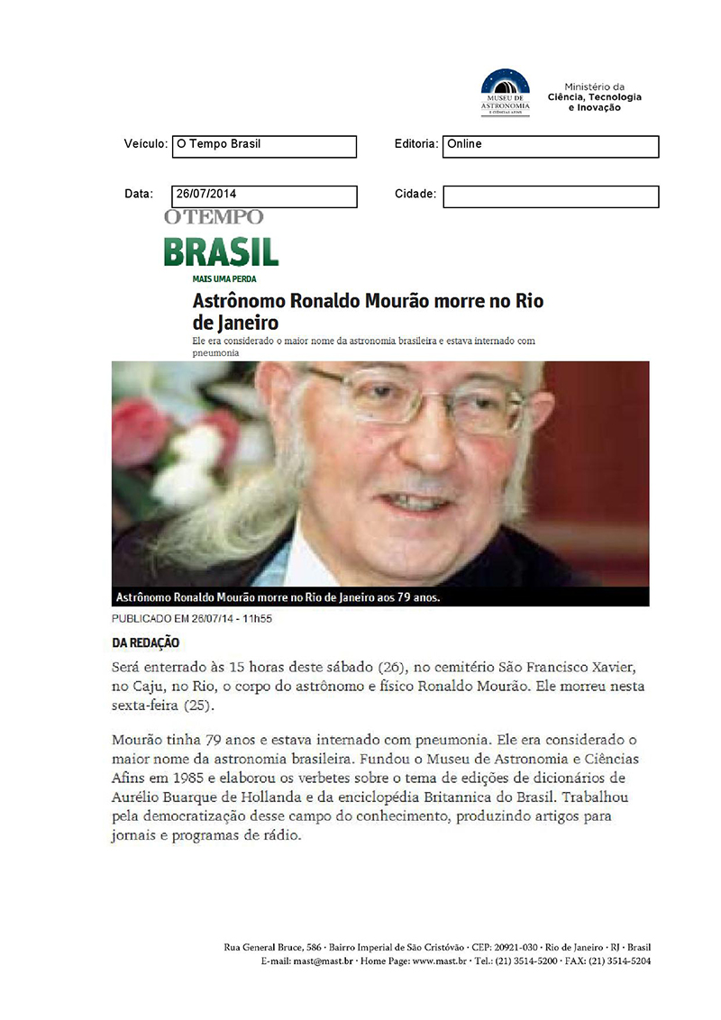 O Tempo Brasil | Astrônomo Ronaldo Mourão morre no Rio de Janeiro