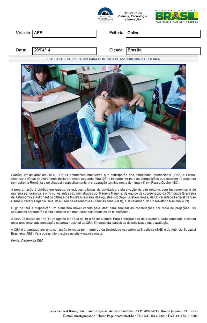 OBA | Alunos iniciam treinamento para olimpíada de astronomia no exterior