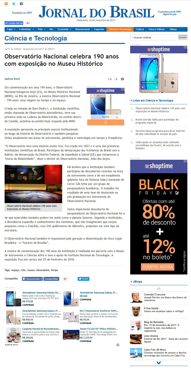 Jornal do Brasil | Observatório Nacional celebra 190 anos com exposição no Museu Histórico