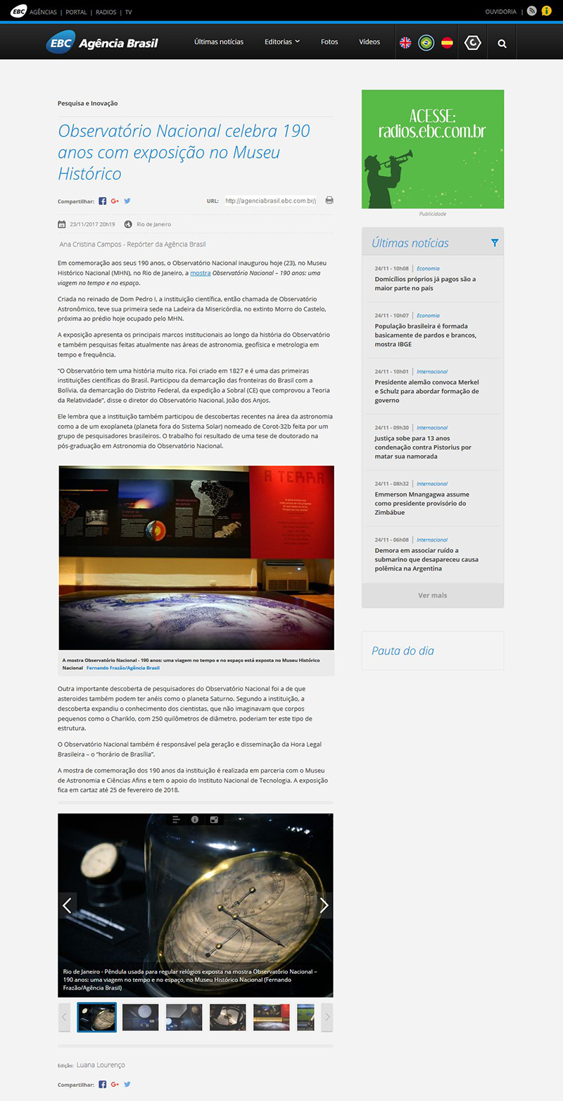 Agência Brasil - EBC | Observatório Nacional celebra 190 anos com exposição no Museu Histórico