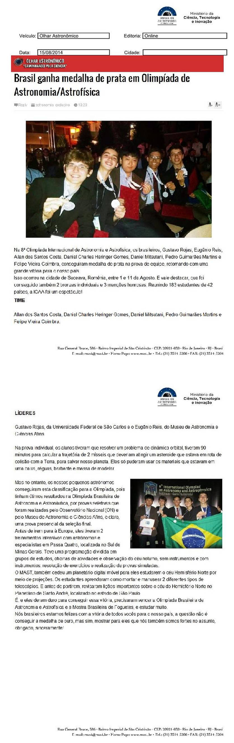 Olhar Astronômico | Brasil ganha medalha de prata em olimpíada de Astronomia/Astrofísica