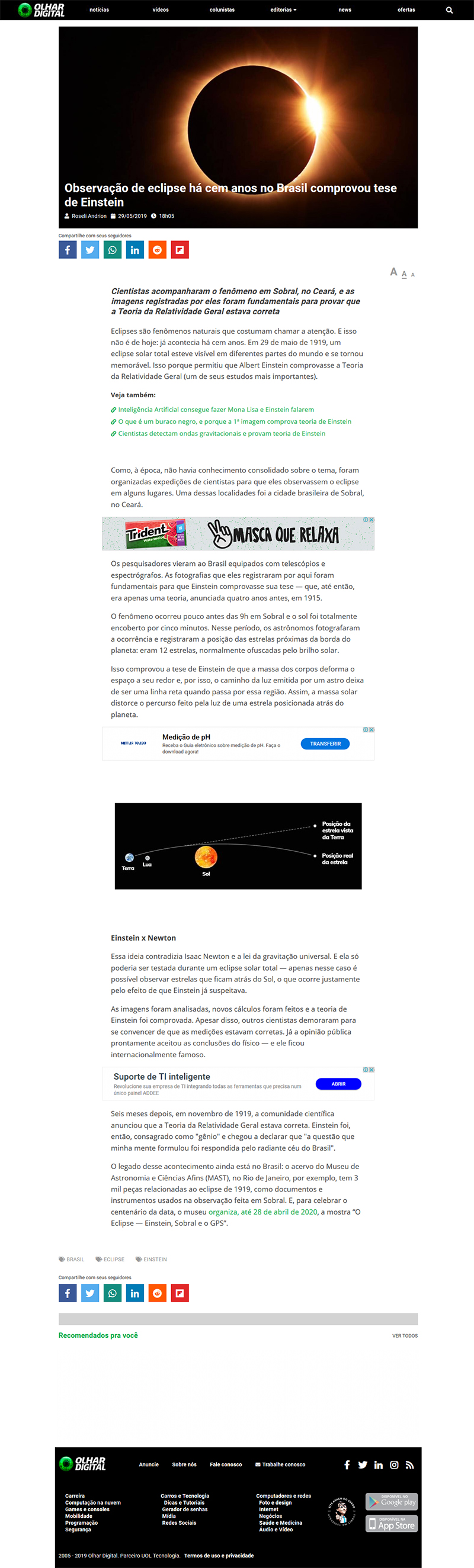 Olhar Digital | Observação de eclipse há cem anos no Brasil comprovou tese de Einstein