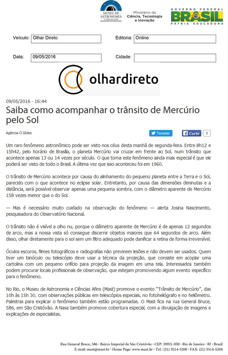 Olhar Direto | Saiba como acompanhar o trânsito de Mercúrio pelo Sol