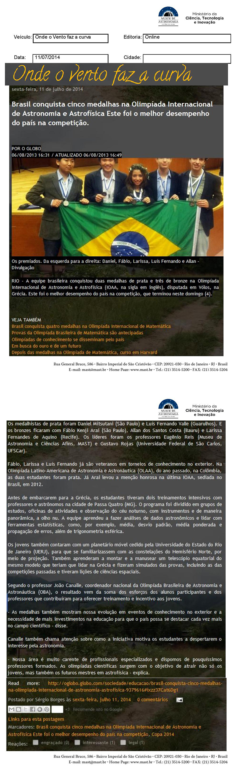 Onde o Vento Faz a Curva | Brasil conquista cinco medalhas na Olimpíada Internacional de Astronomia e Astrofísica este foi o melhor desempenho do país na competição
