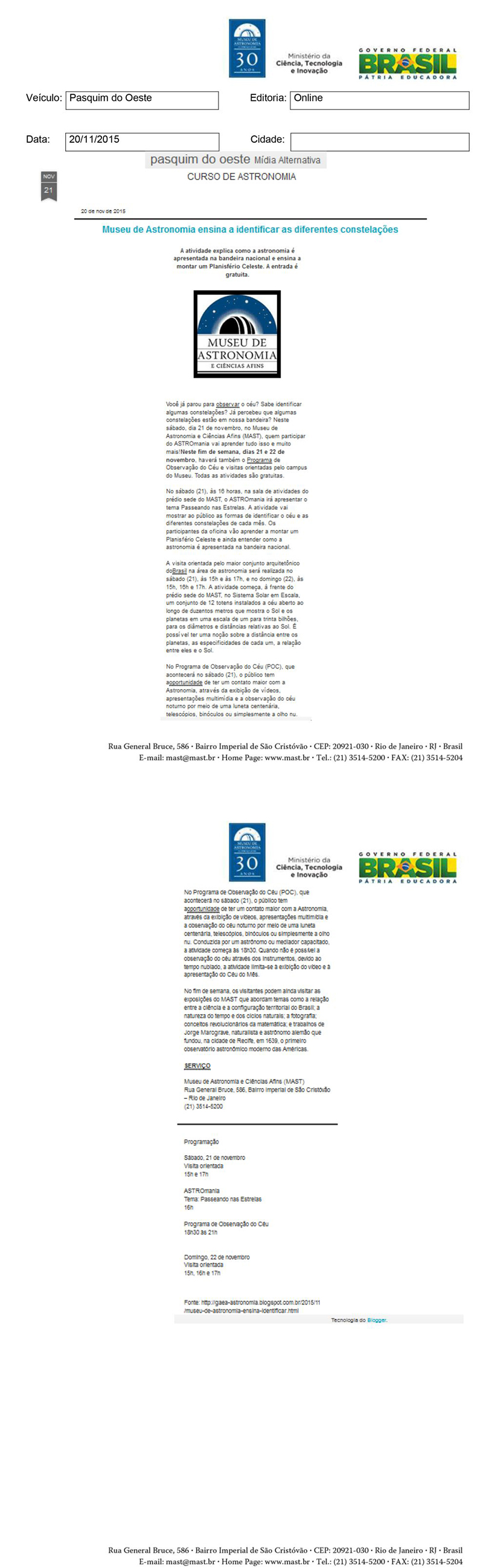 Pasquim do Oeste | Museu de Astronomia ensina a identificar as diferentes constelações