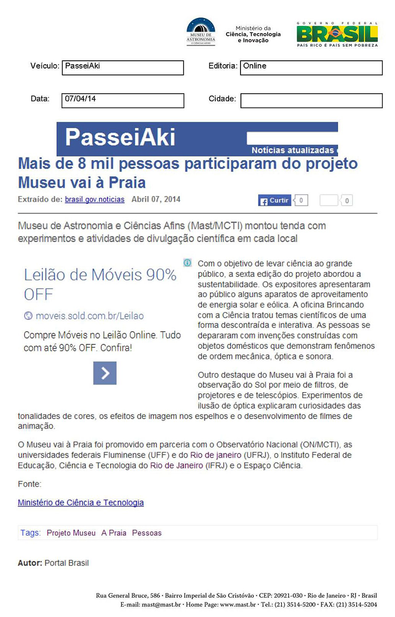 PasseiAki | Mais de 8 mil pessoas participaram do projeto Museu Vai à Praia