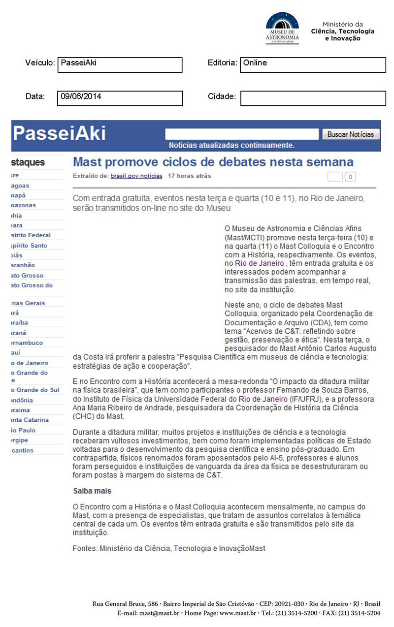 PasseiAki | MAST promove ciclo de debates nesta semana
