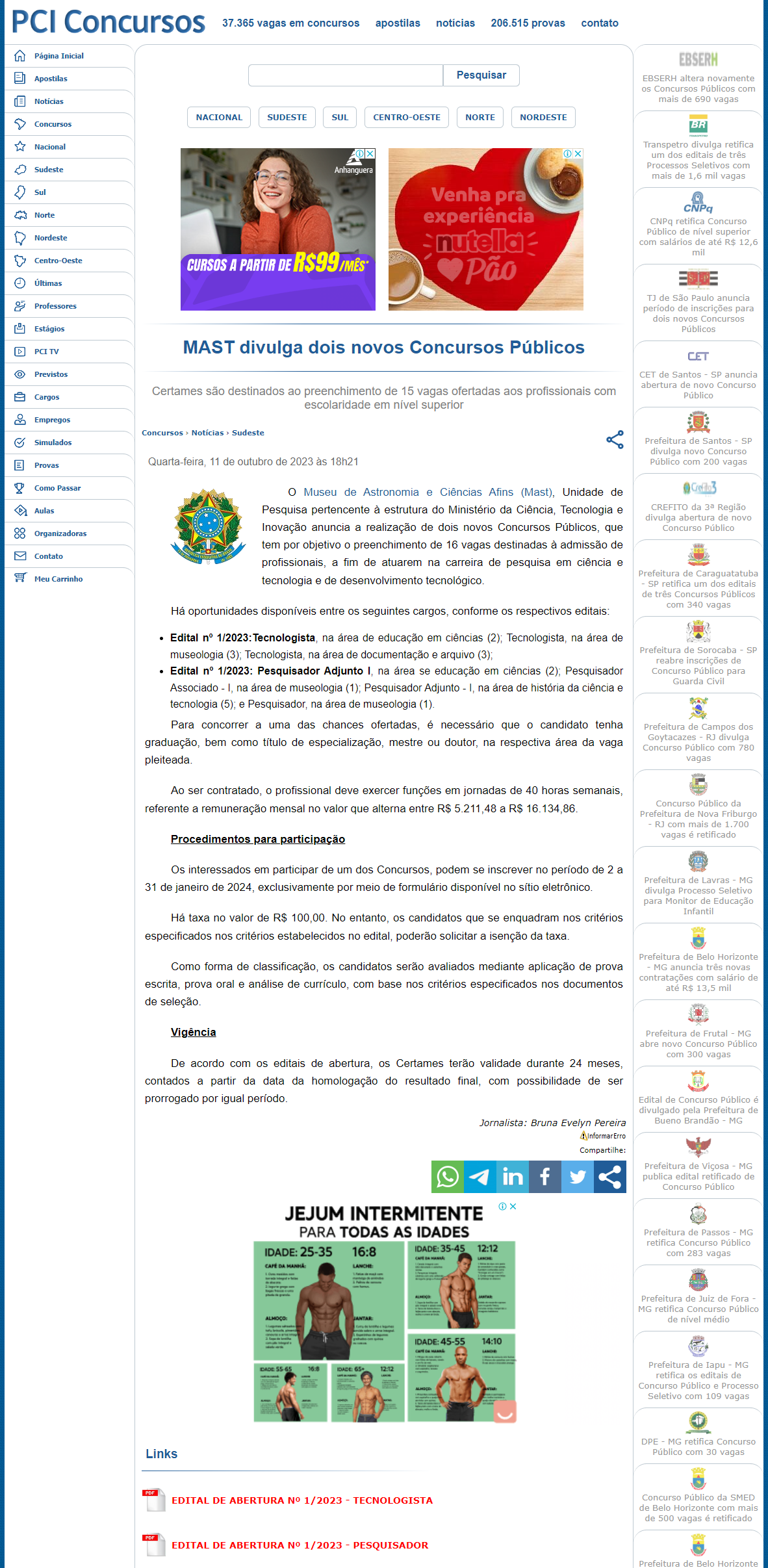 PCI Concursos - MAST divulga dois novos Concursos Públicos