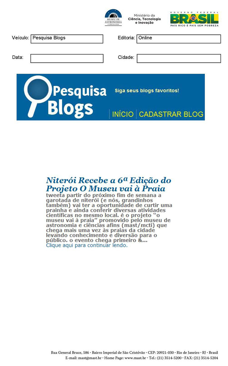 Pesquisa Blogs | Niterói recebe a 6ª Edição do Projeto O Museu Vai à Praia