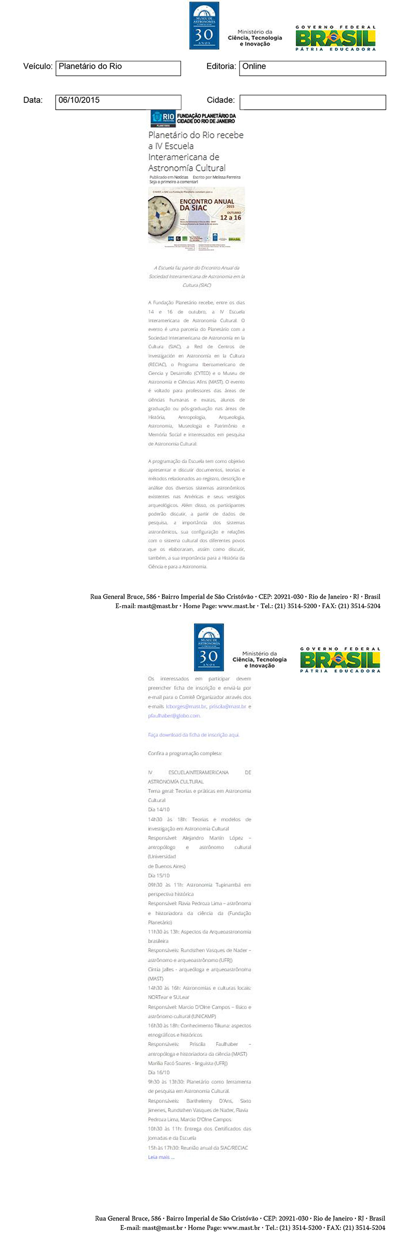 Museu de Astronomia e Ciências Afins - MAST
