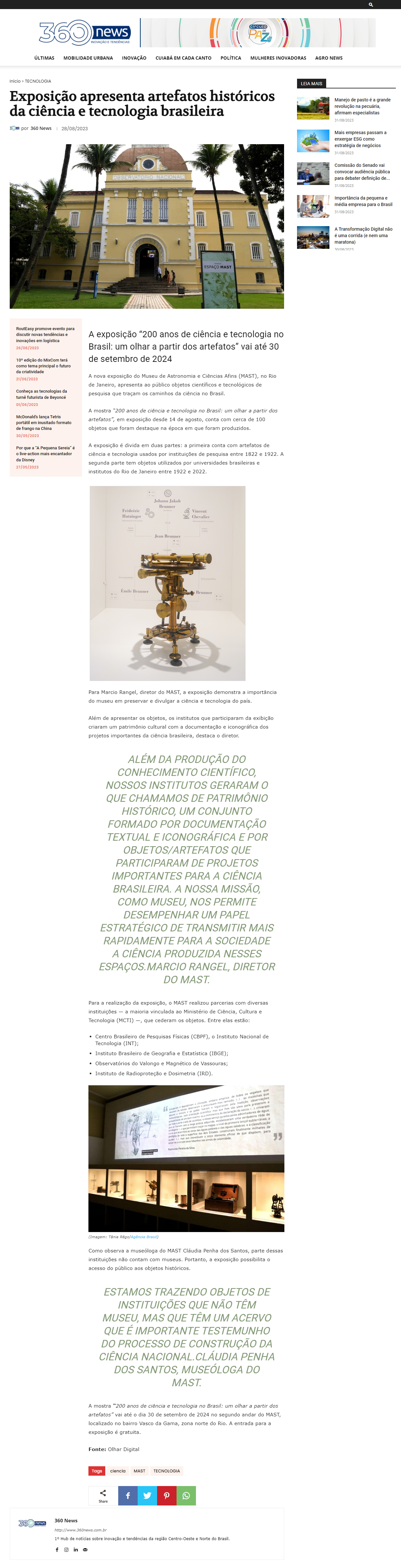 Portal 360 News - Exposição apresenta artefatos históricos da ciência e tecnologia brasileira