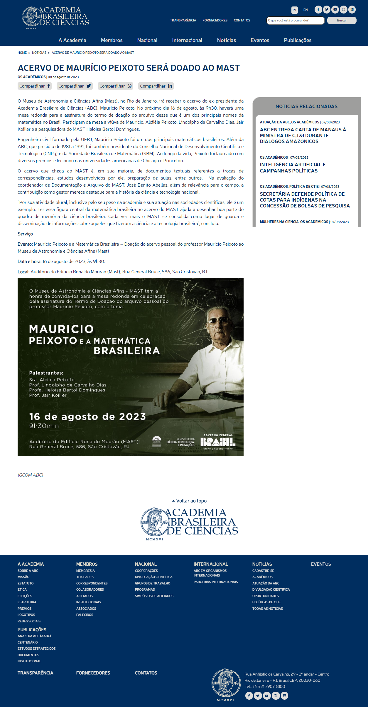 Portal Academia Brasileira de Ciências (ABC) - Acervo de Maurício Peixoto será doado ao MAST