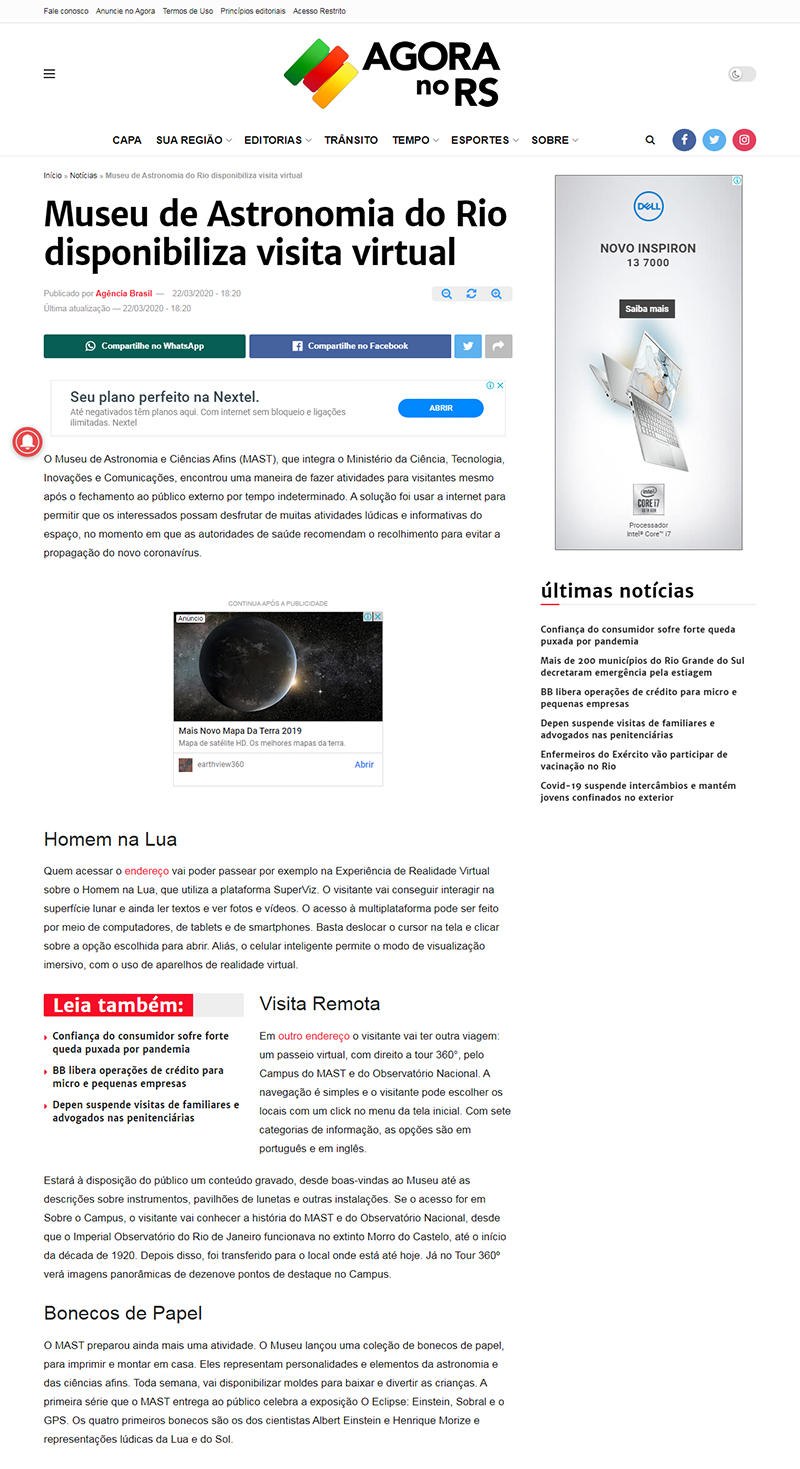 Portal Agora no RS | MAST disponibiliza visita virtual