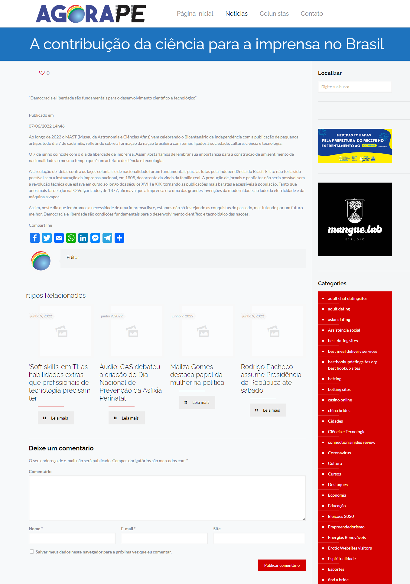 Portal Agora PE (Recife-PE) - MAST celebra 'A contribuição da ciência para a imprensa no Brasil