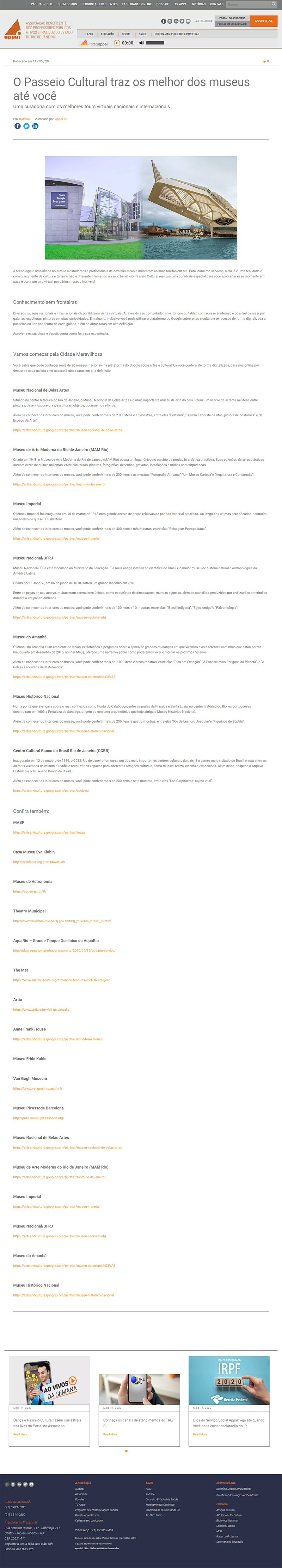 Portal APPAI - Associação Beneficente dos Professores Públicos Ativos e Inativos do Estado do Rio de Janeiro | MAST disponibiliza visita virtual