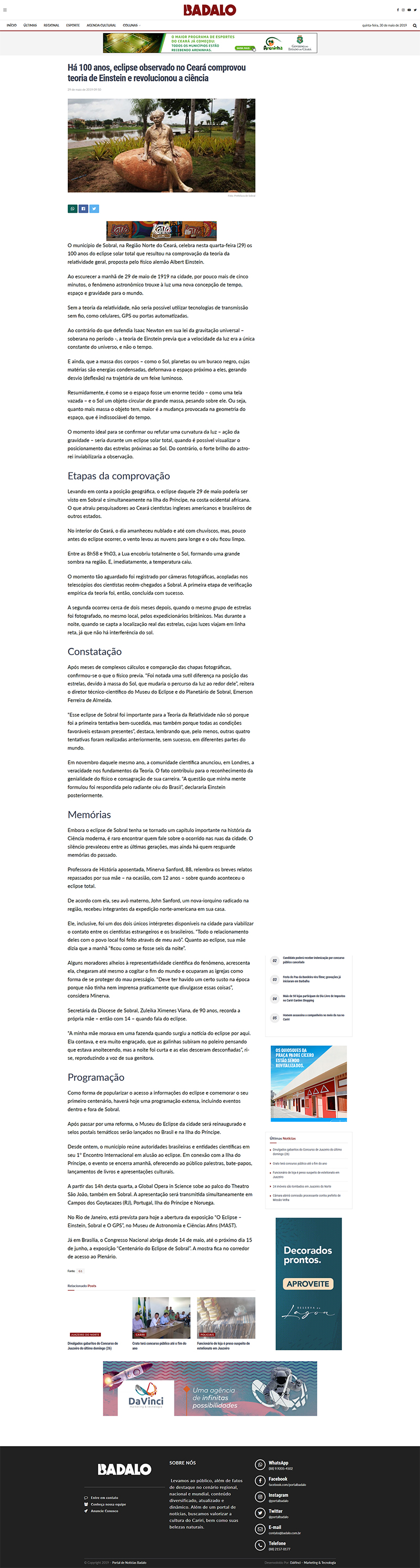 Portal Badalo | Há 100 anos, eclipse observado no Ceará comprovou teoria de Einstein e revolucionou a ciência