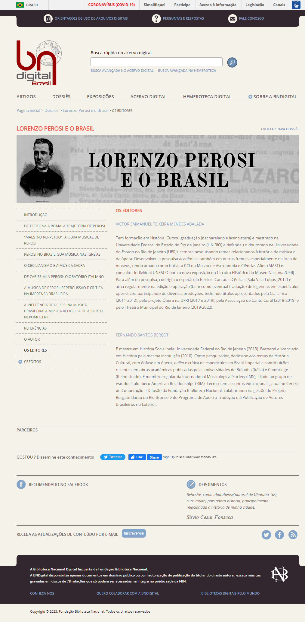 Portal BN Digital Brasil - Artigo Lorenzo Perosi e o Brasil