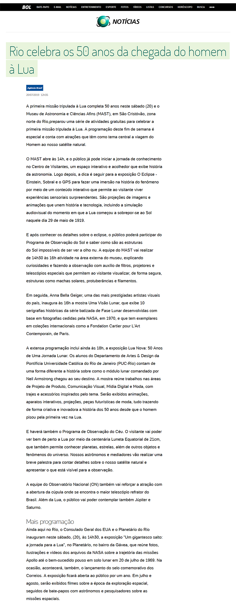 Portal BOL | 50 Anos Homem na Lua - Anna Bella Geiger / Lua Nova PUC