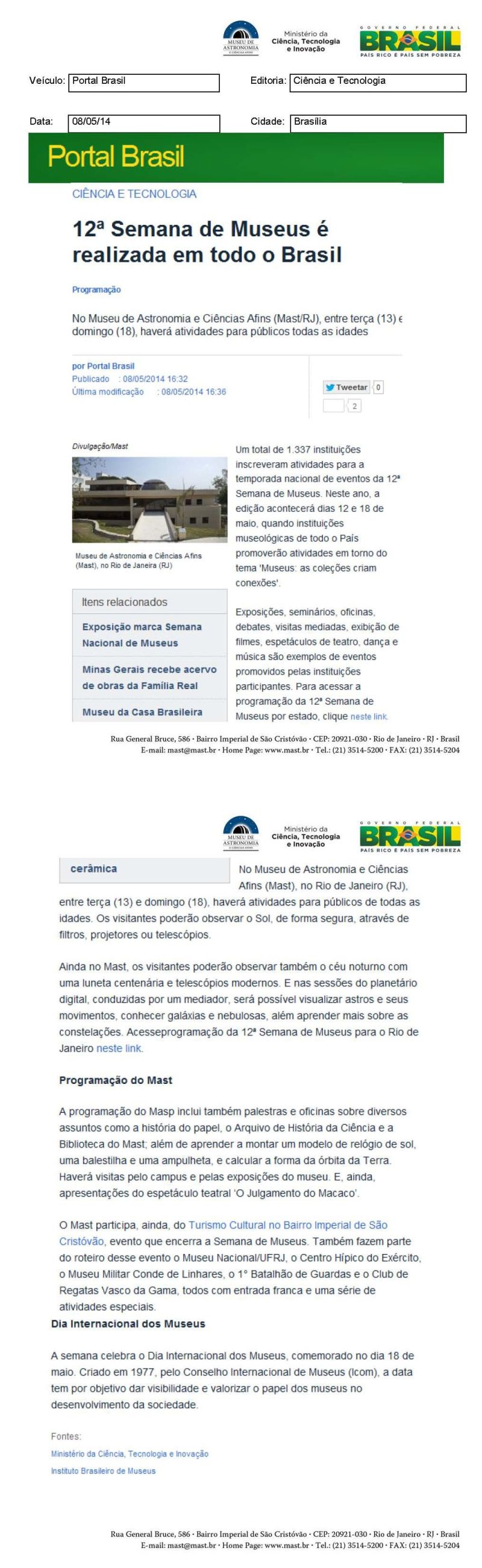 Portal Brasil | 12ª Semana de Museus é realizada em todo o Brasil