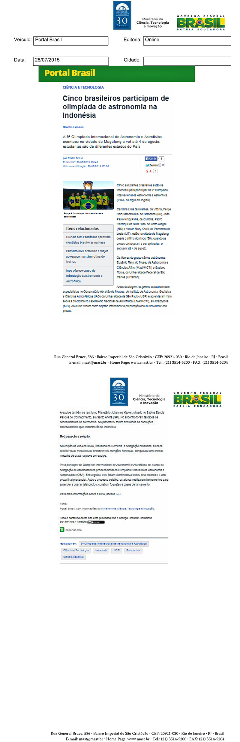 Portal Brasil | Cinco brasileiros participam de olimpíada de astronomia na Indonésia