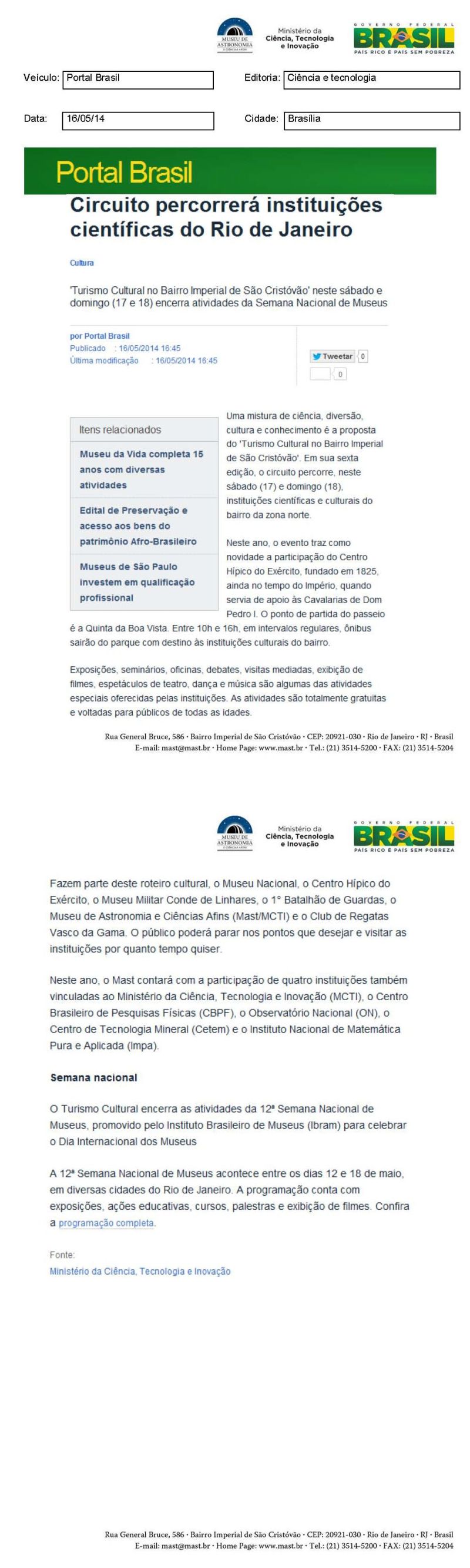 Portal Brasil | Circuito percorrerá instituições científicas do Rio de Janeiro