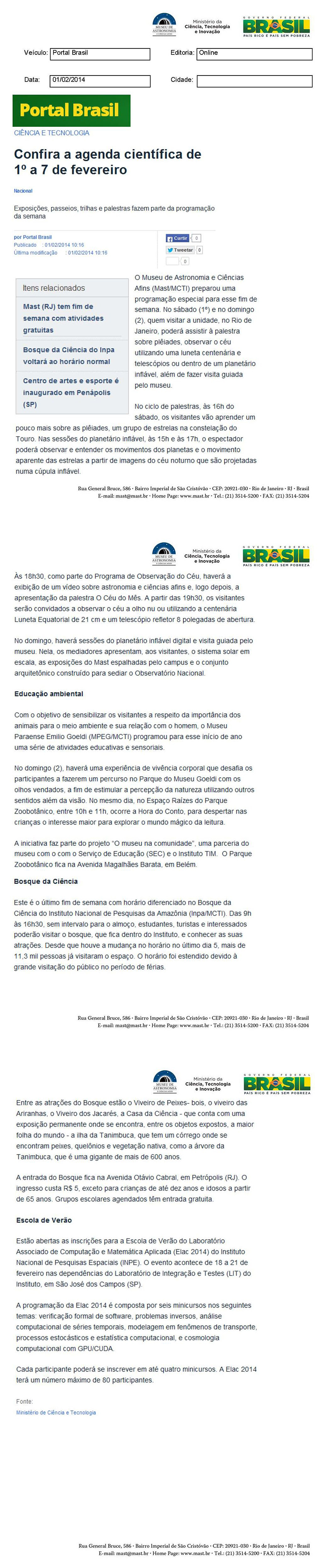 Portal Brasil | Confira a agenda científica de 1º a 7 de fevereiro
