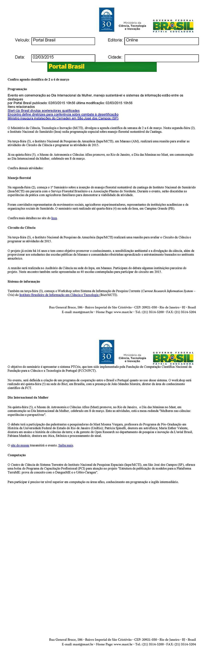 Portal Brasil | Confira a agenda científica de 2 a 6 de março
