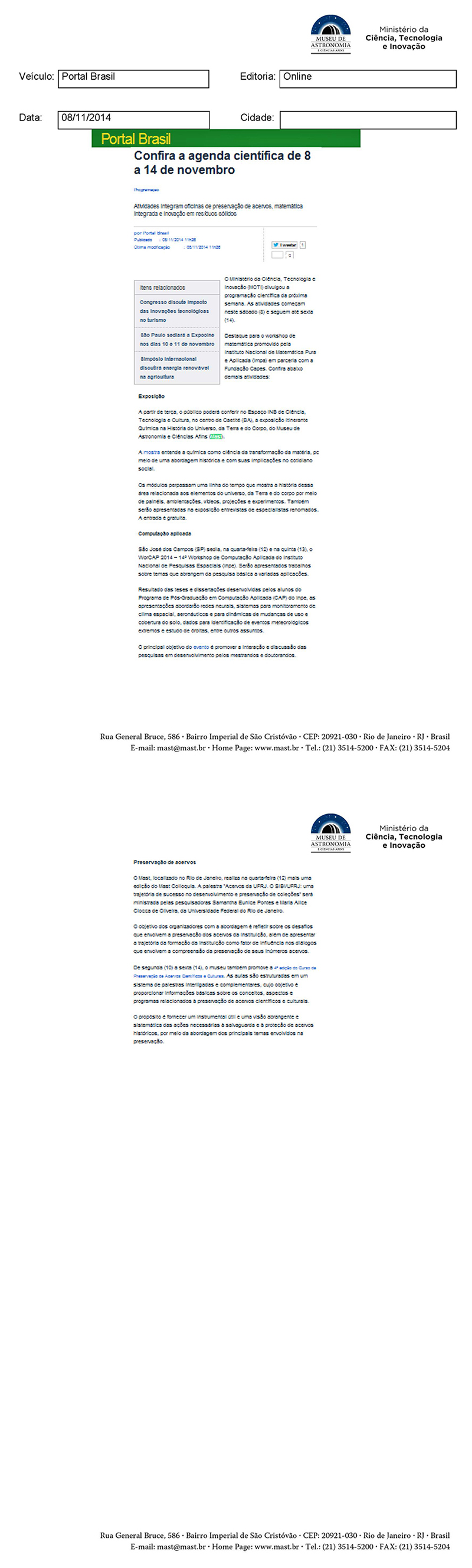 Portal Brasil | Confira a agenda científica de 8 a 14 de novembro