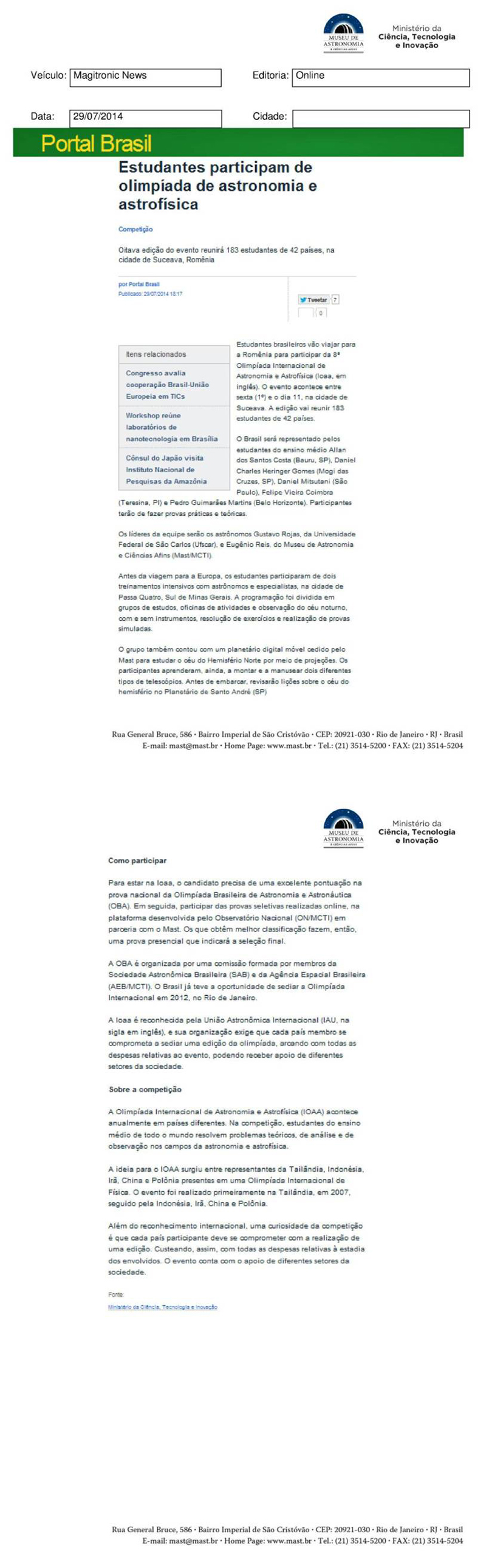 Portal Brasil | Estudantes participam de Olimpíada Internacional de Astronomia e Astrofísica